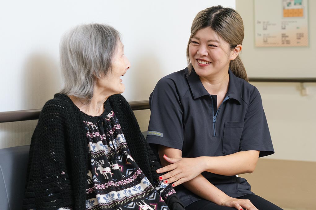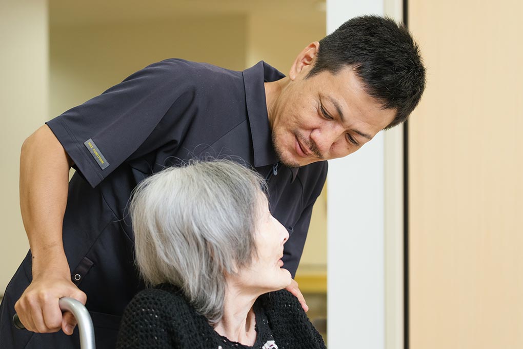 利用者さんとの信頼関係は、一つひとつのケアに心を込めることで生まれます。名前を覚えてもらったり、笑顔を向けてもらえる瞬間は、この仕事ならではの喜び。そして、利用者さんやご家族からの「ありがとう」の一言が、成長を後押ししてくれる原動力です。