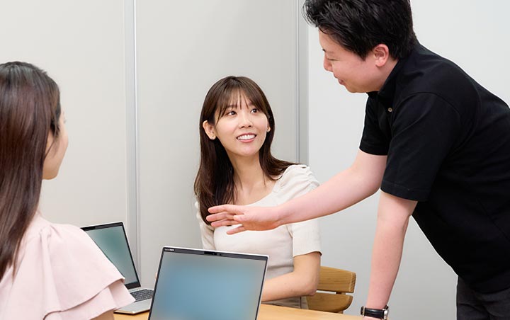 当社では、客先での評価と社内での実績という2つの軸で昇格を判断。多角的な視点から正当な評価を行っています。リーダーやマネージャーといった役職への登用実績も豊富です。評価制度はまだ発展途上でもあり、ポジション構築にかかわるチャンスも。画一的な評価ではなく、一人ひとりの志向に寄り添う評価体制で、あなたの「なりたい」を応援します。