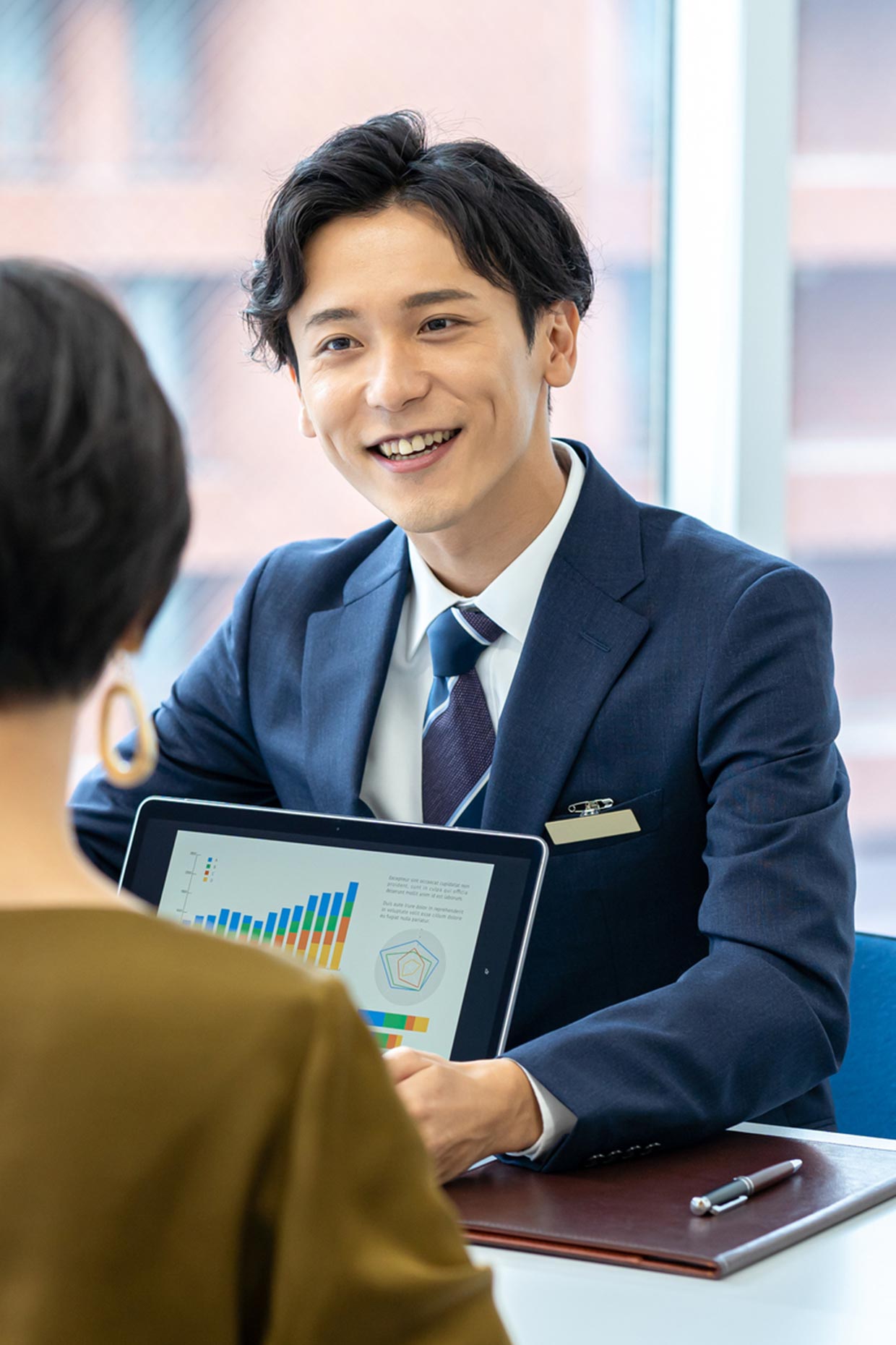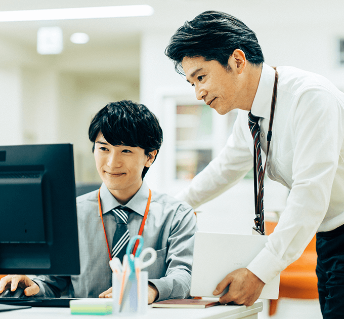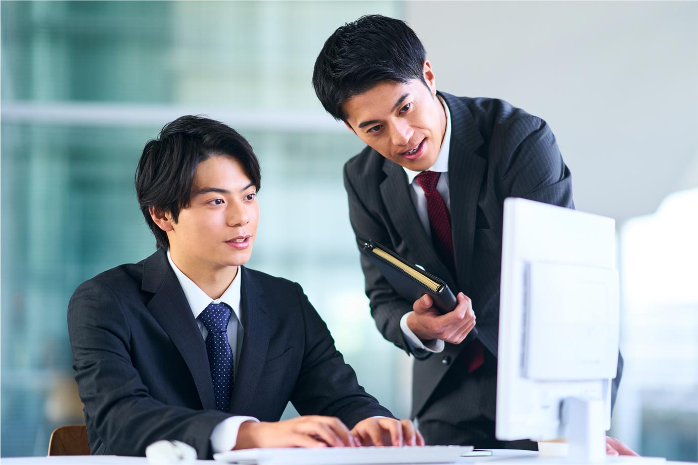 「未経験だから不安…」そんな心配は無用です。入社後は経験豊富な先輩がマンツーマンで丁寧に仕事を教えます。商談の場にも同行し、実践を通して仕事の進め方を基本から学べる環境です。未経験で入社した先輩も多いため、あなたの不安な気持ちに寄り添い、じっくり成長をサポートします。