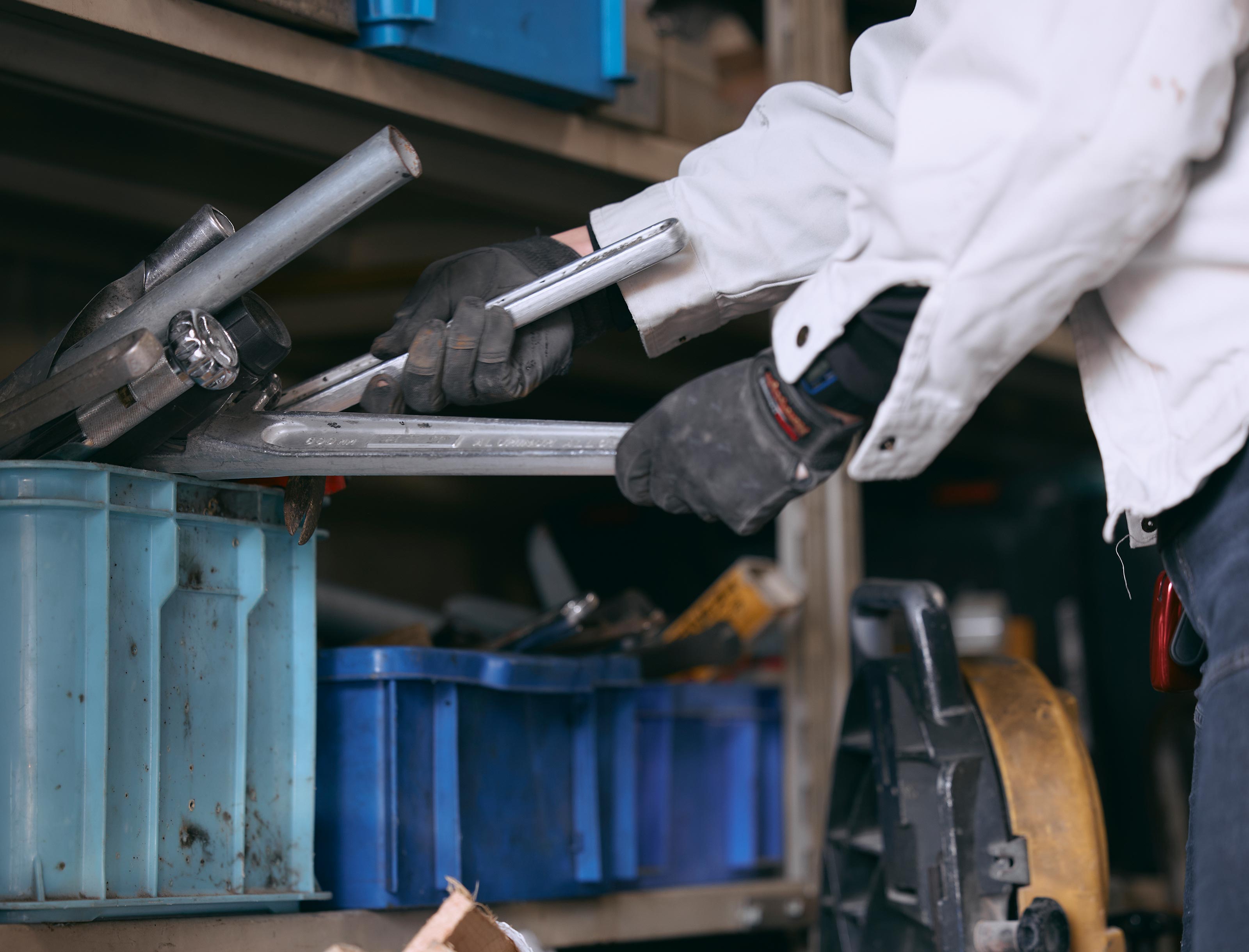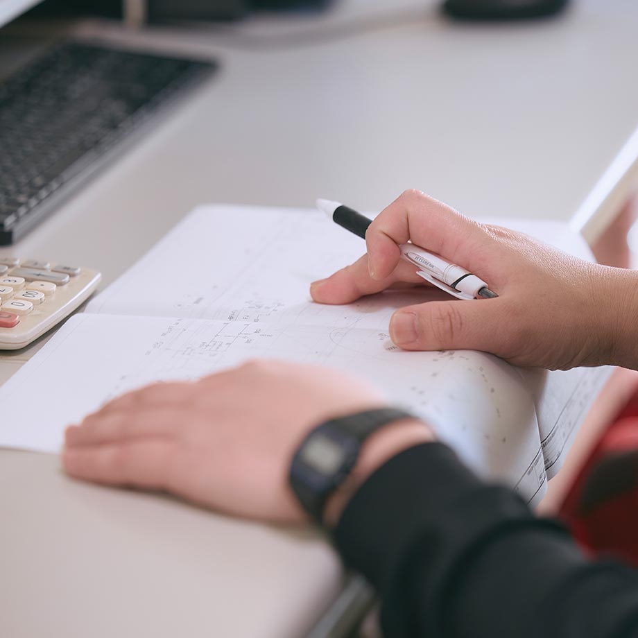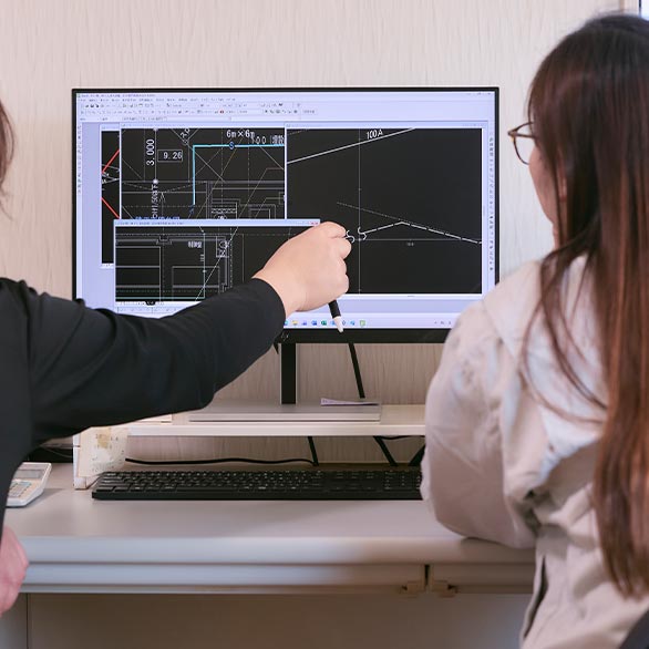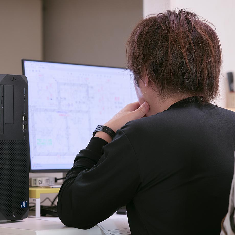 入社の時点で知識や経験がなくても、まったく問題ありません。まずは経験豊富な先輩のいる2~4名のチームに加わり、いつも誰かが隣にいる安心感のなかで、仕事の流れを掴むことから始めます。もちろん「仕事は見て覚えろ」なんて無責任なことは言いません。工具の名前や使い方といった基礎の基礎から丁寧に教えます。焦らず、自分のペースで成長を目指してください。