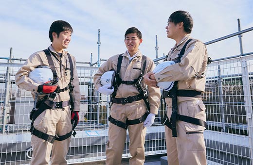 入社後は、先輩社員とともに現場に同行しながら、OJTで丁寧な指導を受けられます。さらに、独り立ち後も上司や先輩が要所でサポートに入る体制を整備。複雑な現場は複数名で担当するため、一人に負担が偏らない仕組みです。こうした手厚いフォロー体制により、経験問わず、みんなが安心して成長できます。