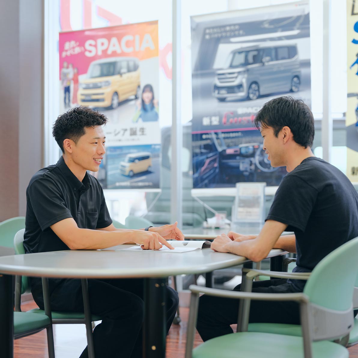 主な業務は、ご来店いただくお客様への車両販売。ただし、単なる物売りではありません。車を趣味や嗜好品としてではなく、“日々の生活を支えるパートナー”として提案しています。