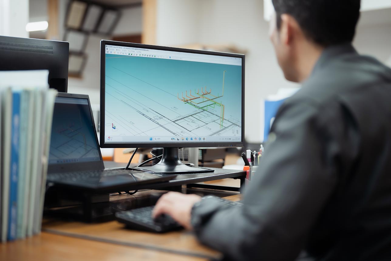 積算から現場指導までを一貫してカバーする対応力が当社の強みです。また、3DCADを駆使した精度の高い図面による技術提案を行うことで、お客様に揺るぎない安心を提供しています。