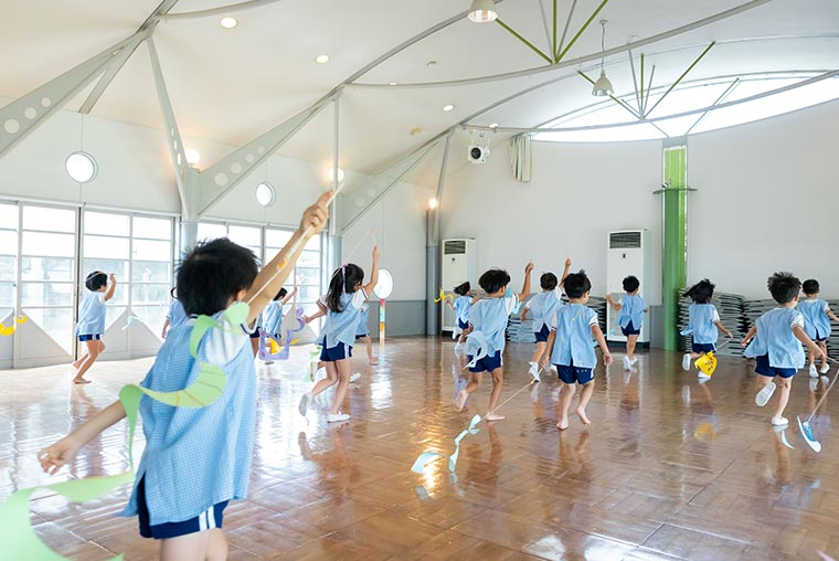 「これは何だろう?」「もっと知りたい!」そんな子どもたちの純粋な好奇心こそ、成長の原動力です。私たちは、その小さな輝きを何よりも大切にしています。自然豊かな環境の中で園舎内にある秘密のお庭で、小虫や動物・植物と触れ合い、お池のかめさんと挨拶し、園庭では思いっきり走り回って遊びます。園外保育に出かけて自然の移り変わりを肌で感じます。水族館・プラネタリウム・動物村・演劇鑑賞などを通して、子どもたちの心にワクワクや感動を届けます。おもちつきやお泊まり保育といった特別な体験は、仲間との絆を深め、確かな自信を育む貴重な時間。保護者の皆様とは、日々の成長の喜びを分かち合い、まるで一つの大きな家族のように、あたたかい関係を築いています。
