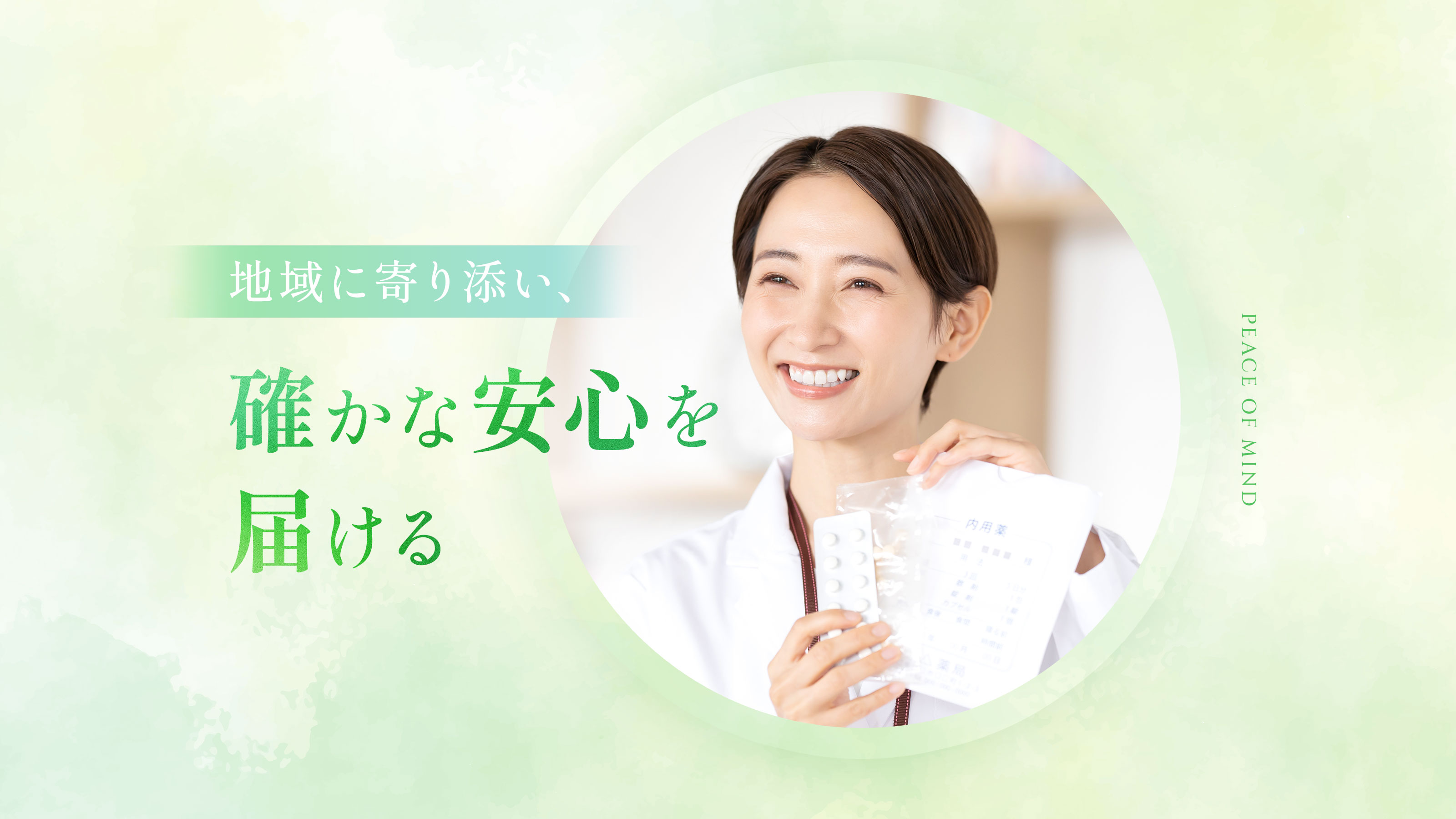 皆様の「お気に入りの薬局」であり続けるために。お薬をお渡しするだけでなく、医療・福祉・暮らしをつなぐ地域のハブとしての役割を担います。時代の変化に対応し、皆様の期待を超える価値を提供し続けます。