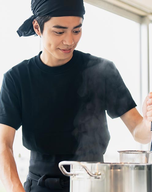 入社後は、先輩スタッフによるOJTでムリのないペースで仕事を覚えられます。いきなり一人にしたり、「見ながら覚えて」と突き放したりすることはありません。わからないことは何でも聞ける環境だから、安心してスキルアップできます。仕事に慣れてきたら、本格的なラーメンづくりのノウハウもお伝えします。