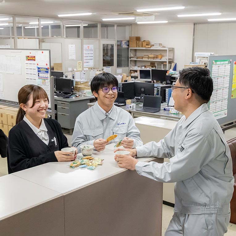私たちの職場の大きな魅力は、風通しの良い職場環境。スタッフの意見に耳を傾け、すぐに反映できるよう努めています。近年では、空調服の支給や制服支給頻度の見直しを実施しました。このような環境改善ができるのは、安定した仕事量に裏づけされた盤石な経営基盤があるからこそです。利益はただ貯めるのではなく、積極的に還元するべきであると私たちは考えています。これからも、スタッフ第一で、快適な職場を目指します。