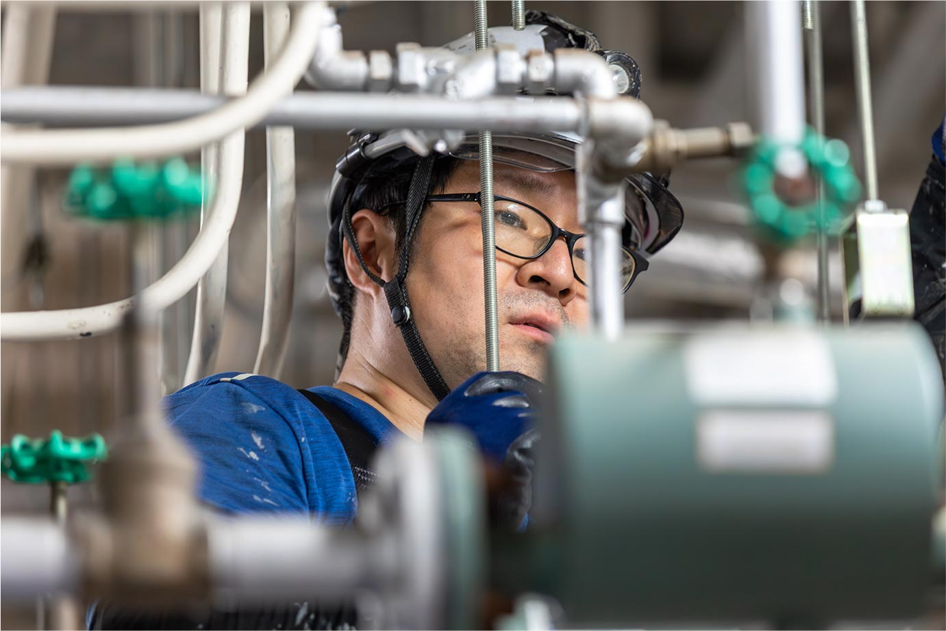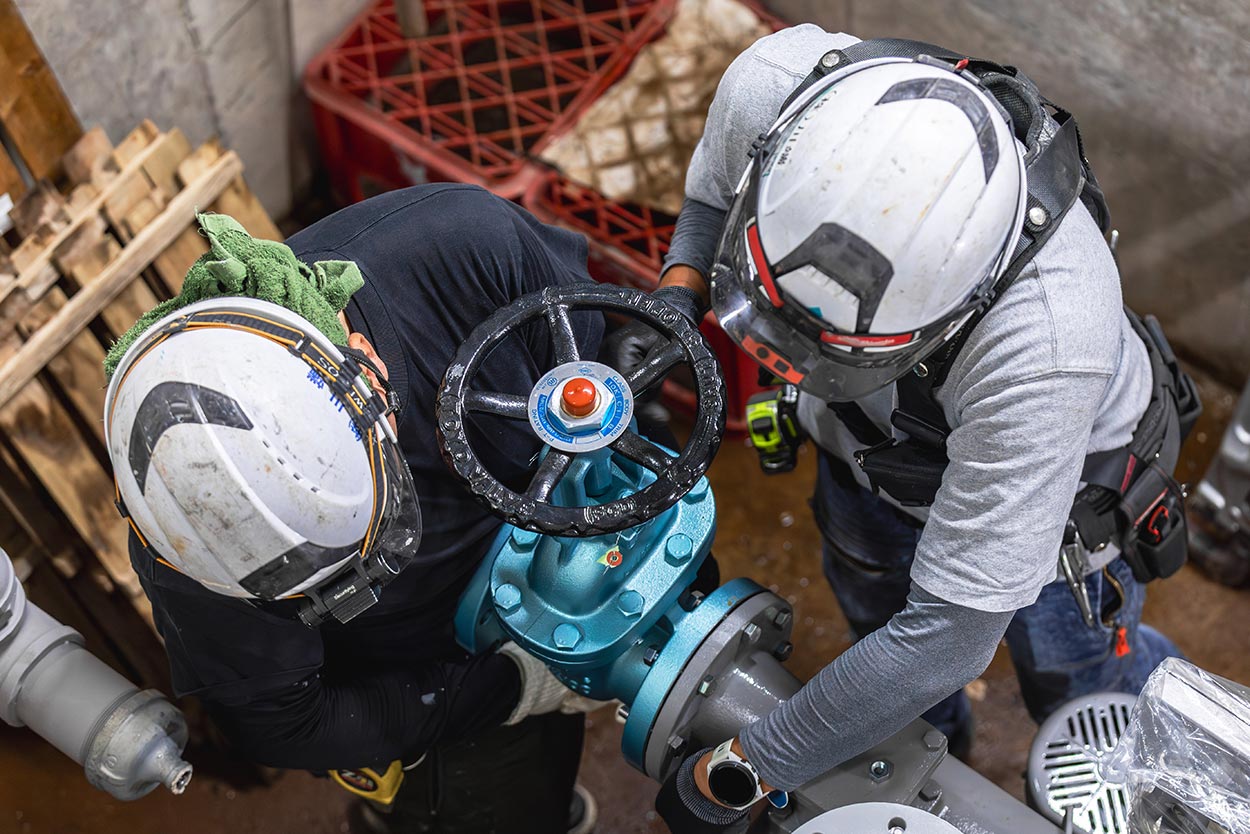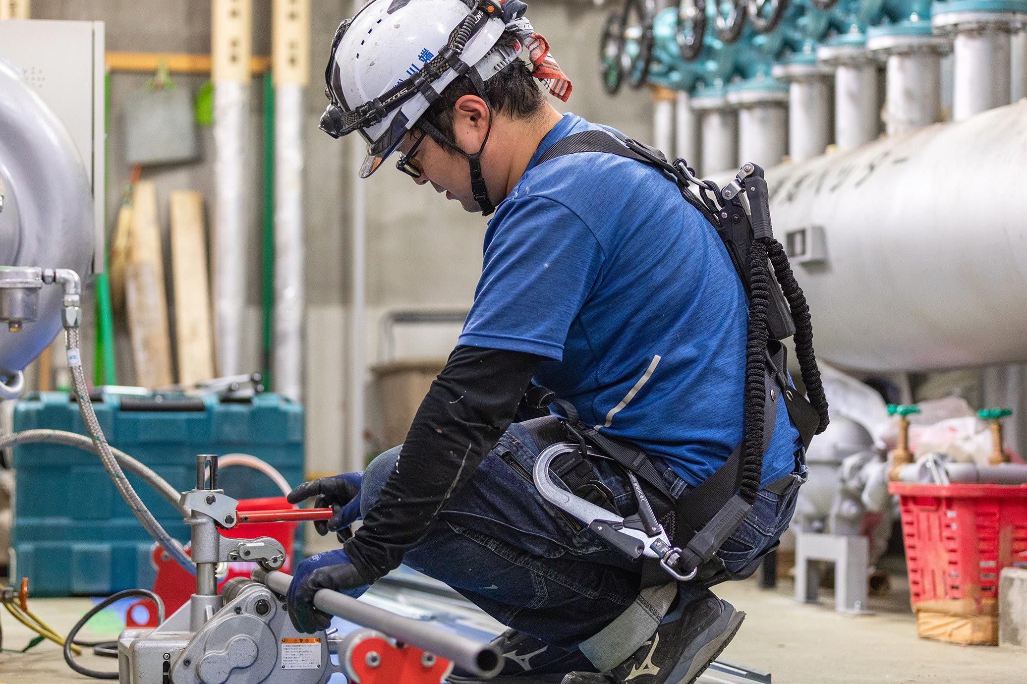 私たちが行っているのは、商業施設や公共施設といったさまざまな建物の配管工事です。目の前の現場に向き合っていくうちに、衛生、空調、消火設備と幅広い技術を習得できます。