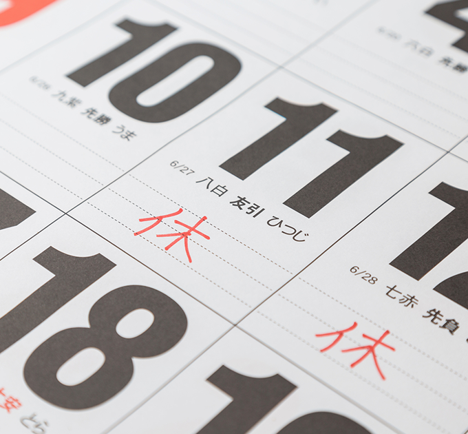 基本的に日曜は必ず休みで、1月~6月は完全週休2日制。週末に旅行にでかけることも叶います。またGW・夏季・年末年始には長期休みがあり、2~3泊以上の旅行や遠方への帰省もしやすいはず。有給休暇も取得しやすいので、平日にある学校行事や趣味のイベントなども参加可能です!充実したプライベートを過ごせる分、仕事も頑張れる。そんな好循環を生み出しています。