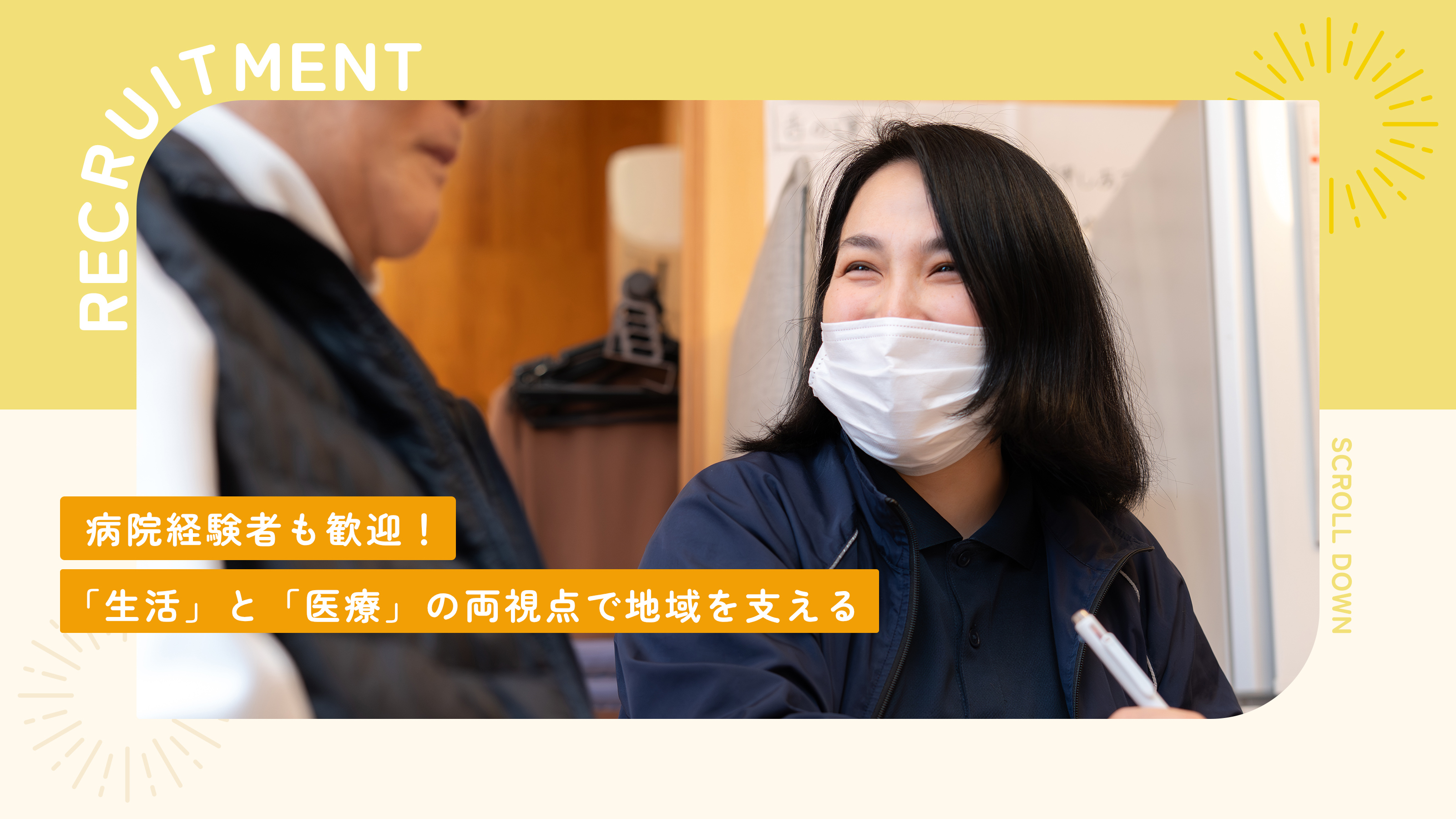 訪問看護師として、主治医の指示のもと利用者さまのご自宅で医療的ケアを行います。点滴や吸引、インスリン注射などの処置に加え、医療機器や服薬の管理、褥瘡ケアなども担当。24時間体制ですが、シフト制で負担が偏らないよう調整しており、残業はほとんどありません。無理のない働き方で、利用者さまの暮らしに寄り添う看護ができます。