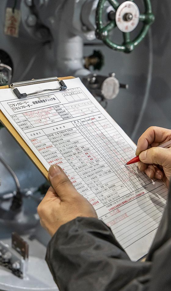 私たちの使命は、事故を未然に防ぐ「予防保全」を行うことです。高圧ガスプラントやタンクローリー、各種バルブなど——社会インフラを支える設備を、確かな専門技術で守り続けています。