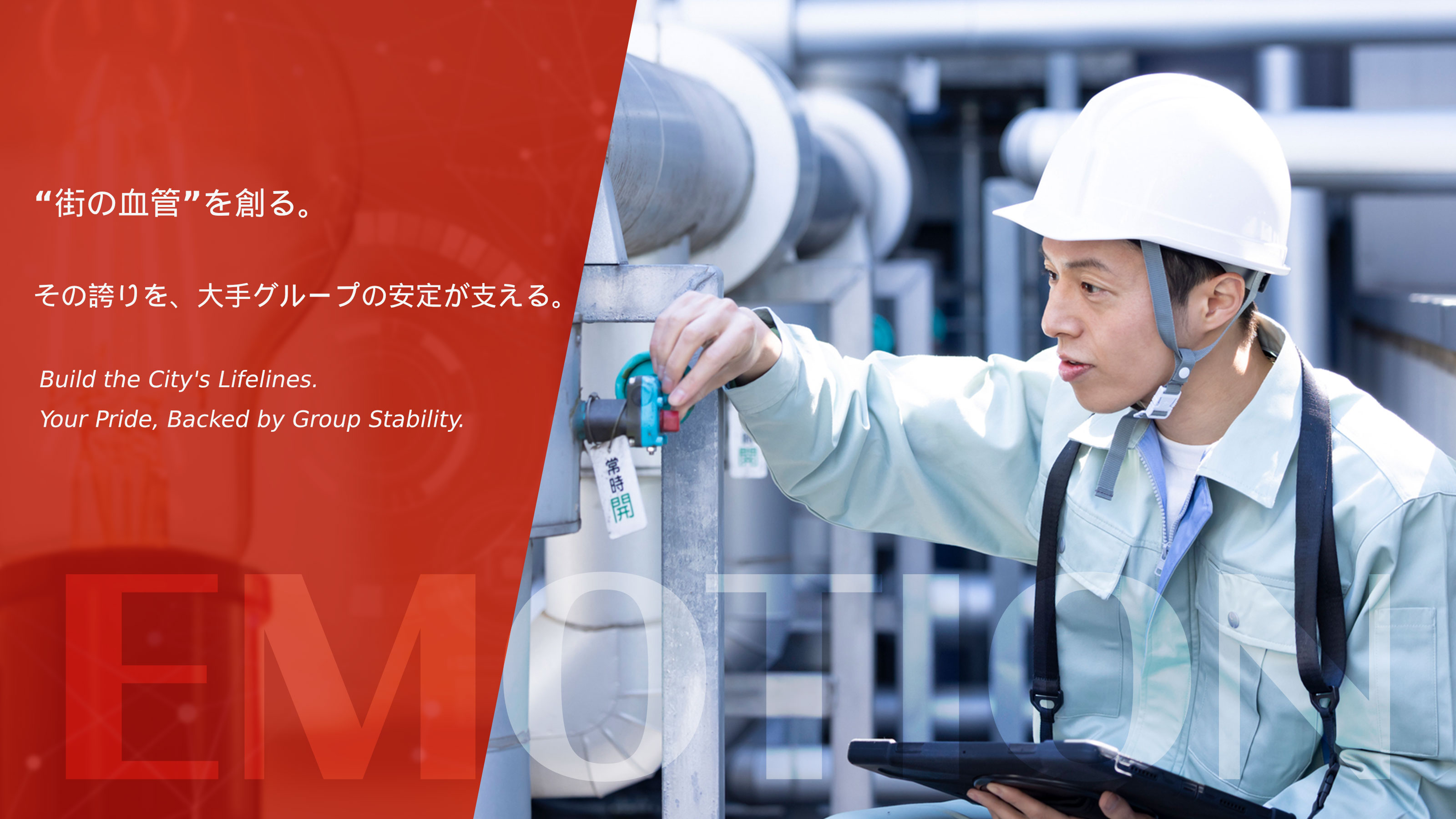 設計図という“平面のデータ”を、自分の手でカタチにし、 巨大な設備を完成させる達成感は、この仕事ならではの醍醐味。そして日々の「当たり前」を支えるという使命感が、仕事への誇りにつながります。大手グループの安定感のもと、あなただけのやりがいを掴みましょう。