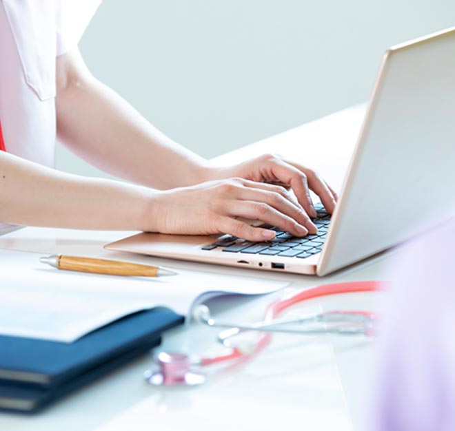 いつでも学べる動画研修をご用意。さらに実務面では、iPhoneやiPadを使用した電子カルテの操作を実践的に指導し、業務効率をサポートするなど、看護師が着実に成長できる研修体制を整えています。
