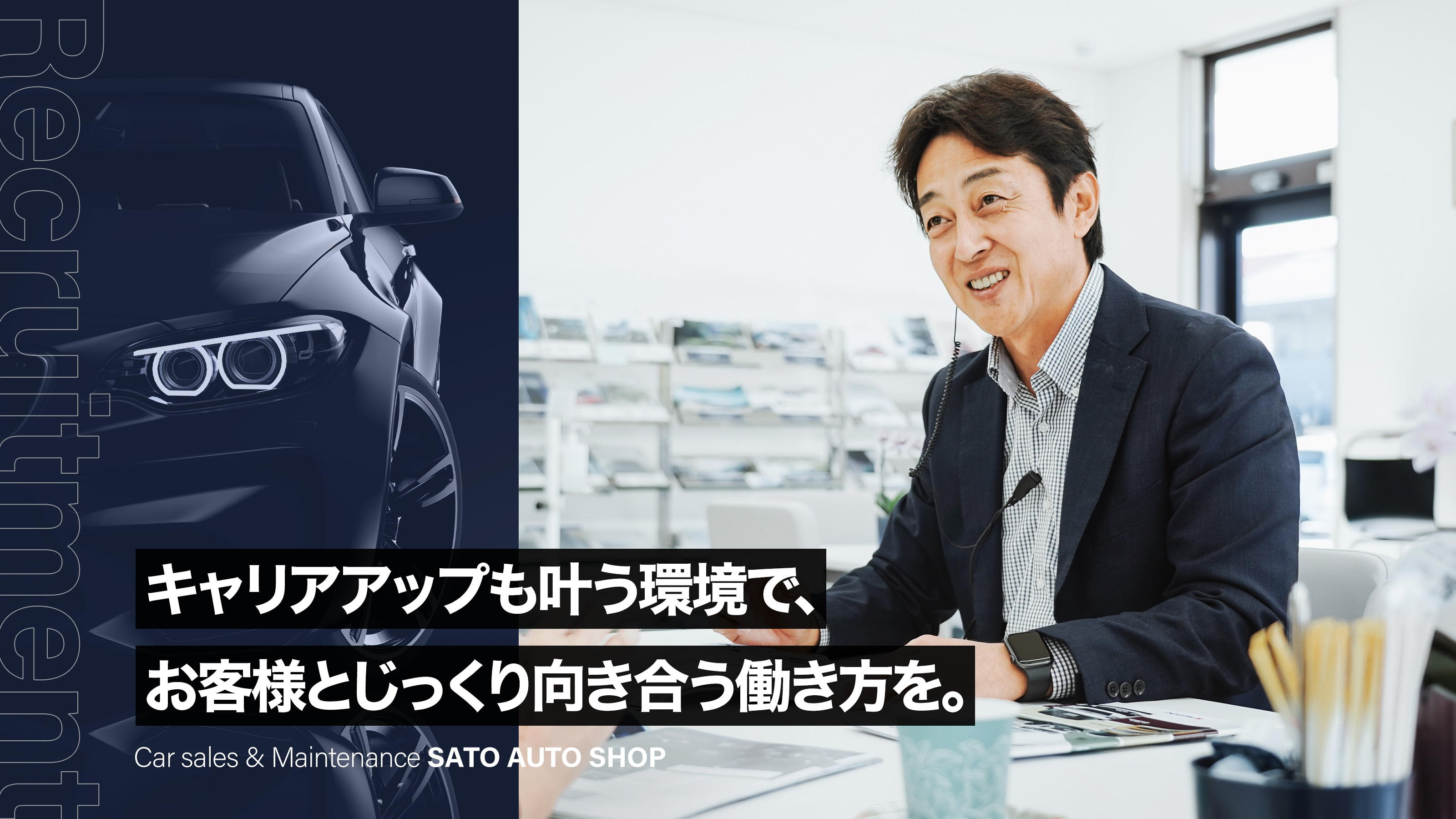 あなたにおまかせするのは・新車や中古車の販売、自動車保険の営業です。その他にも、商談から納車、アフターサービスまで一貫して担当します。