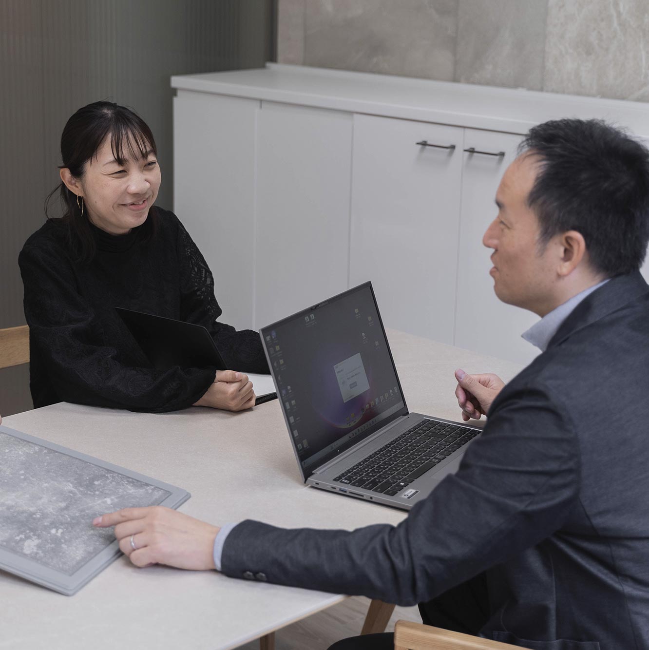 先輩社員がマンツーマンで丁寧に指導します。毎週木曜日の朝礼では社員教育の時間を設け、業務に必要な知識を共有。さらに月に1回、外部コンサルタントによる営業セミナーを開催し、実践的なスキルを習得できます。資格取得を目指す方には支援制度もご用意しており、キャリアアップを全面的にバックアップします。