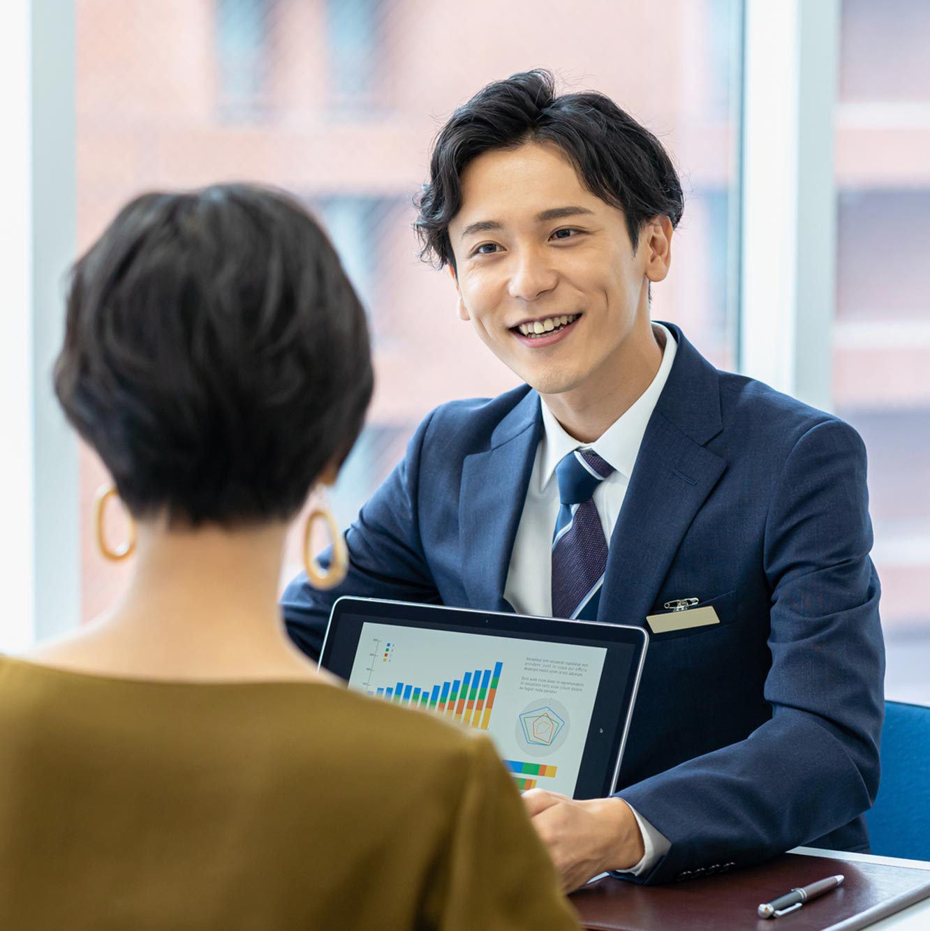 当社が求めているのは、あなたが最も価値を発揮できるプロセスを自ら見つけ出すこと。もちろん、その自由を最大限に活かすための“武器”は、私たちが万全に用意します。最新のPCやスマートフォン、顧客管理システム、保険商品の比較システムまで、日々の活動を支えるツールはすべて揃っています。不要な会議や報告業務で、貴重な時間を奪うこともありません。お客様と向き合う時間にだけ集中できます。