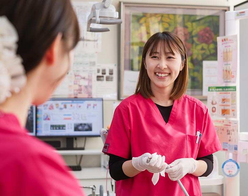 当院は予防処置が業務の中心であり、歯科衛生士本来の専門性を最大限に発揮できる環境です。担当制を導入しているため、小さな変化に気づき、長期的な視点で口腔内の健康を守り育てていきます。60分のアポイントは、丁寧な処置に加え、患者様の不安や生活習慣に耳を傾けるカウンセリングを行う大切な時間です。