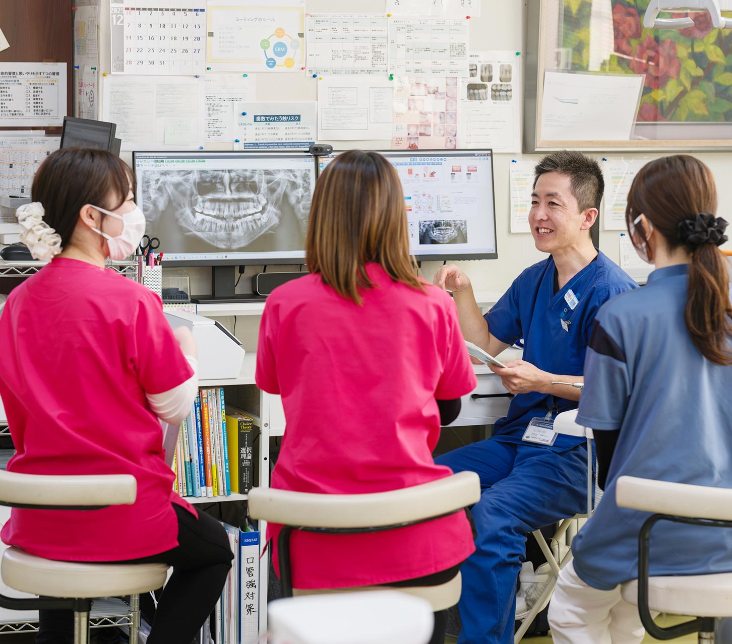 「価値観に寄り添う」「専門家として成長し続ける」「チームで支え合う」といった信条を毎朝の朝礼で唱和し、行動に反映させています。私たちは患者様の幸せと同じように、共に働く仲間の成長と喜びも大切にしています。