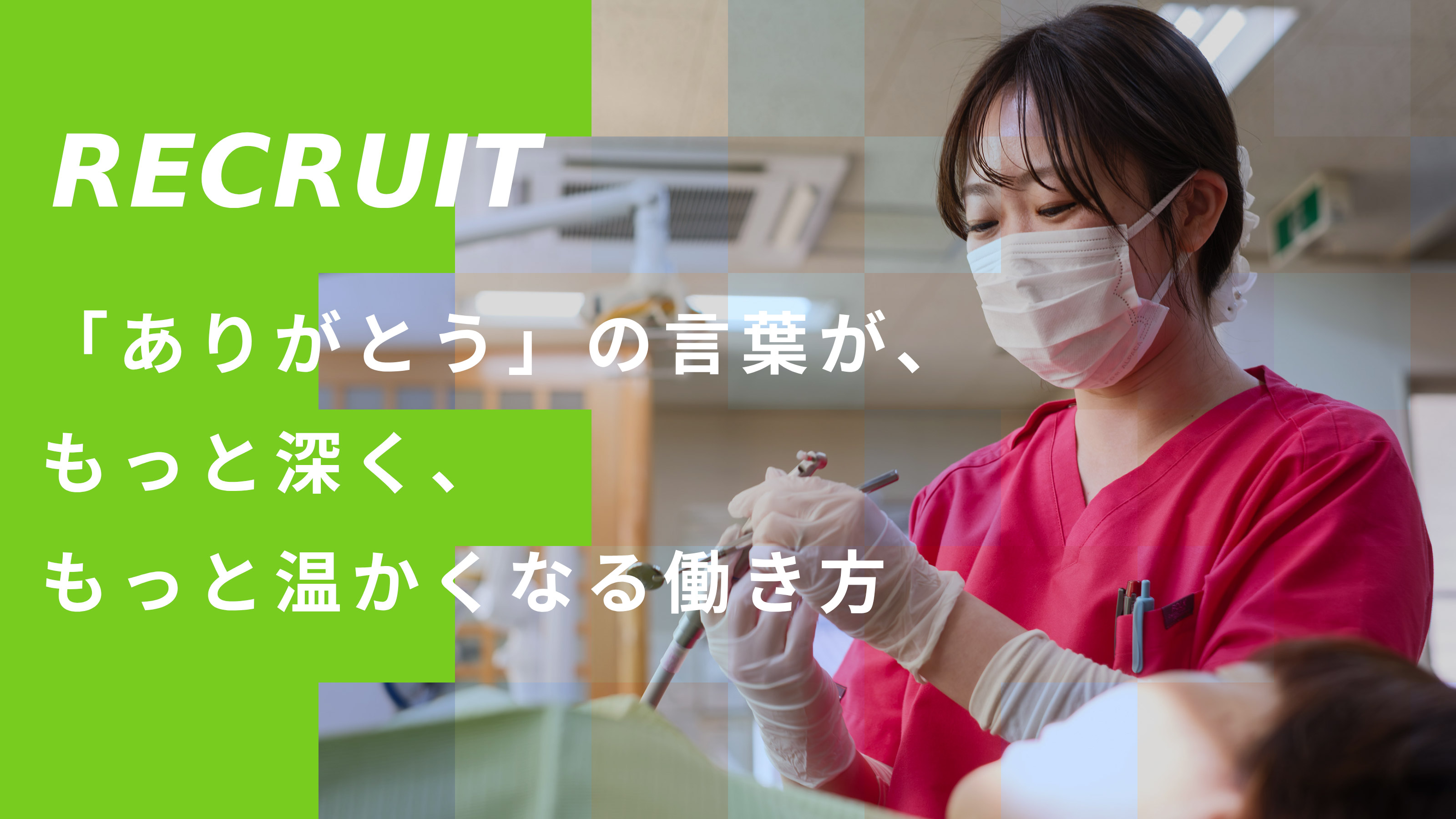 私たちは、一人ひとりの患者様と長く関わる中で、「人として成長できる環境」を用意して、あなたの参加をお待ちしています。