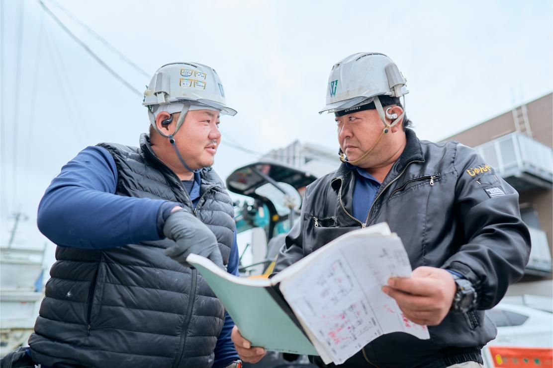 水道設備の仕事とは違い、一人だけでは完結しないため、仲間との連携が欠かせません。