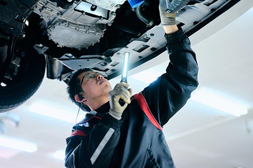 高度な故障診断まで車検整備、一般整備、新車用品取付など、ホンダ車に関するあらゆる修理やメンテナンスを担当します。テスターを使い、エンジンや電装系など複雑な故障の原因を探る、高度な診断業務にも対応します。