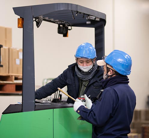 当社の運送事業は、自社で管理・販売する紙製品の輸送を主軸としています。湿気や荷崩れに弱いデリケートな紙製品の特性を熟知しているからこそ、積み込みから荷下ろしまで、いかなる状況でも丁寧な輸送を徹底できます。専門スキルを持つスタッフが、日々の安全確認を行いながら迅速に作業を進めます。
