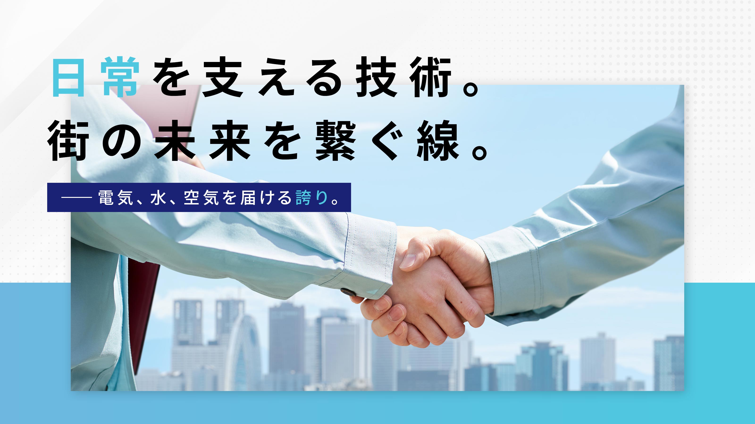 電気・水道・空調といった社会インフラを一手に担う責任を自覚し、平時の環境整備に加え、災害時の迅速な復旧体制構築など、地域の安全と安心を最優先に考えた活動を継続しています。私たちは、環境負荷の低減や次世代の育成にも取り組み、持続可能な地域社会の発展に貢献したいと考えています。