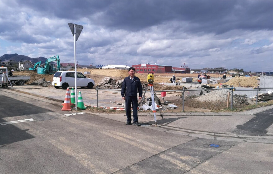 私たちの主な仕事は、住宅会社などのお客様から依頼を受け、「開発許可申請」を行うことです。これは、土地の測量が終わった後、その土地に安全に建物を建てられるよう、たくさんの図面を作って行政に申請し許可をもらうための大切な手続きです。