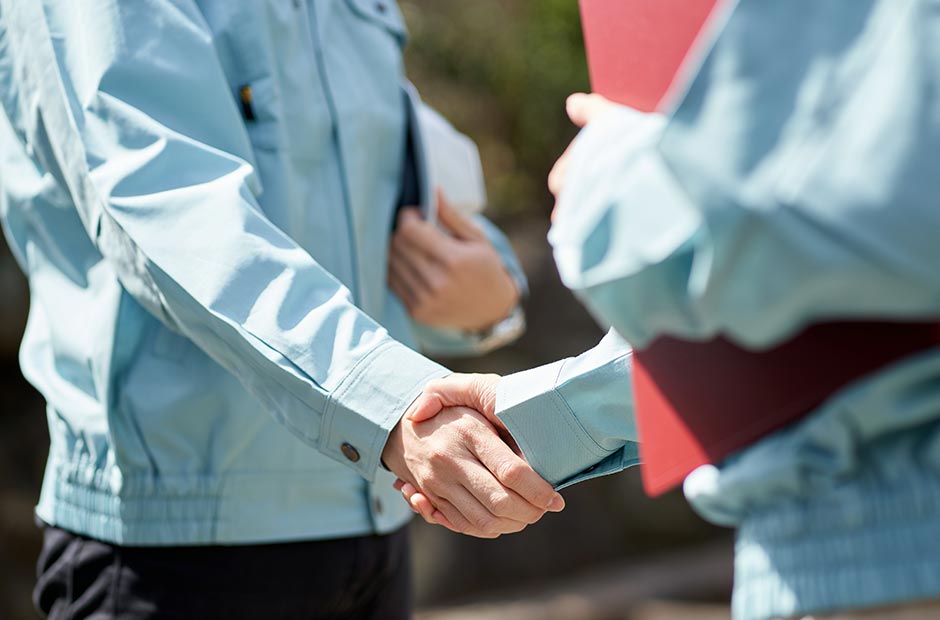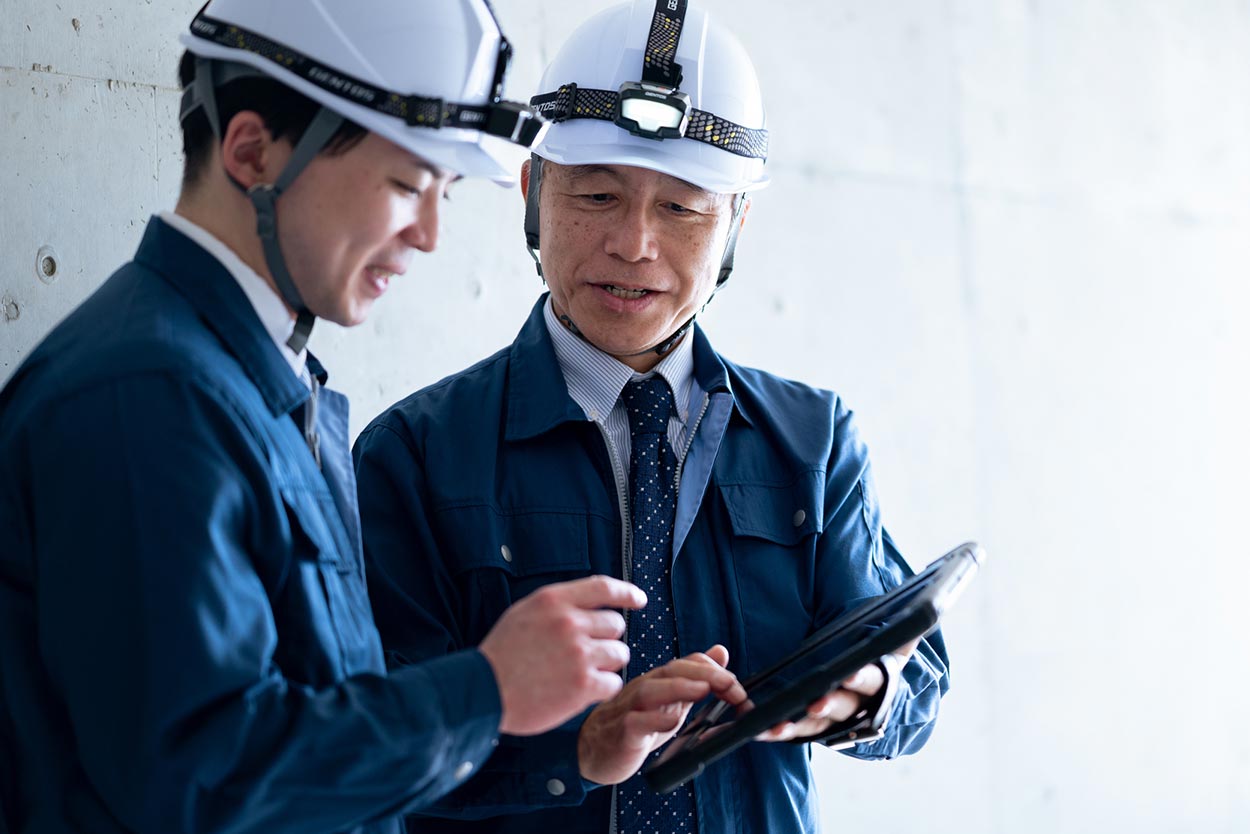 当社は創業以来、3つの理念を掲げています。「信頼と技術で築く顧客の満足」「努力と和で築く会社の繁栄・社員の幸福」「誠意と情熱で築く未来社会の建設」。 これらに共通するのは、人とのつながりを大切にし、どこまでも誠実に仕事に向き合う姿勢です。技術力はもちろんですが、それ以上に「人としての誠意」を大切にすることが、結果として良い仕事につながると信じています。