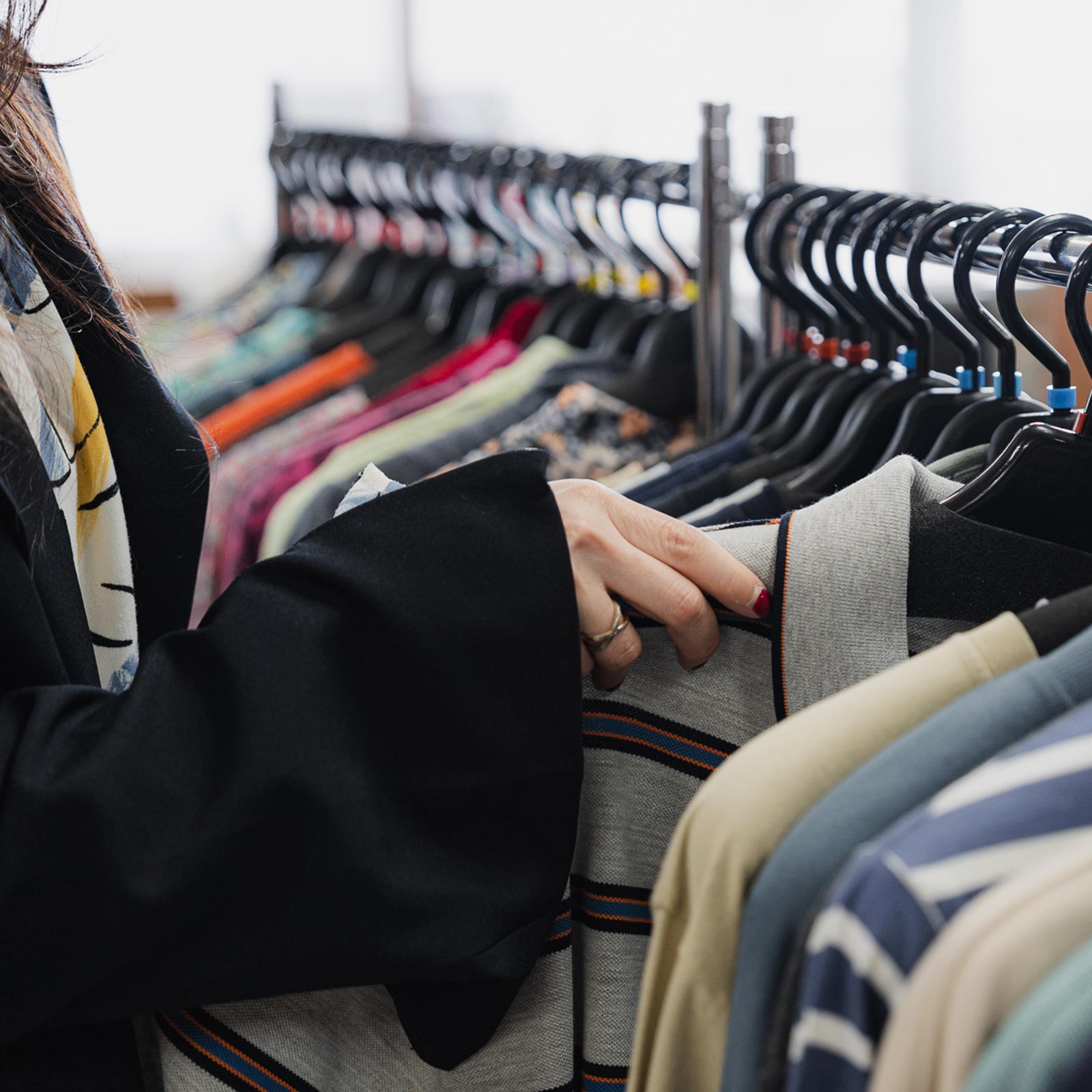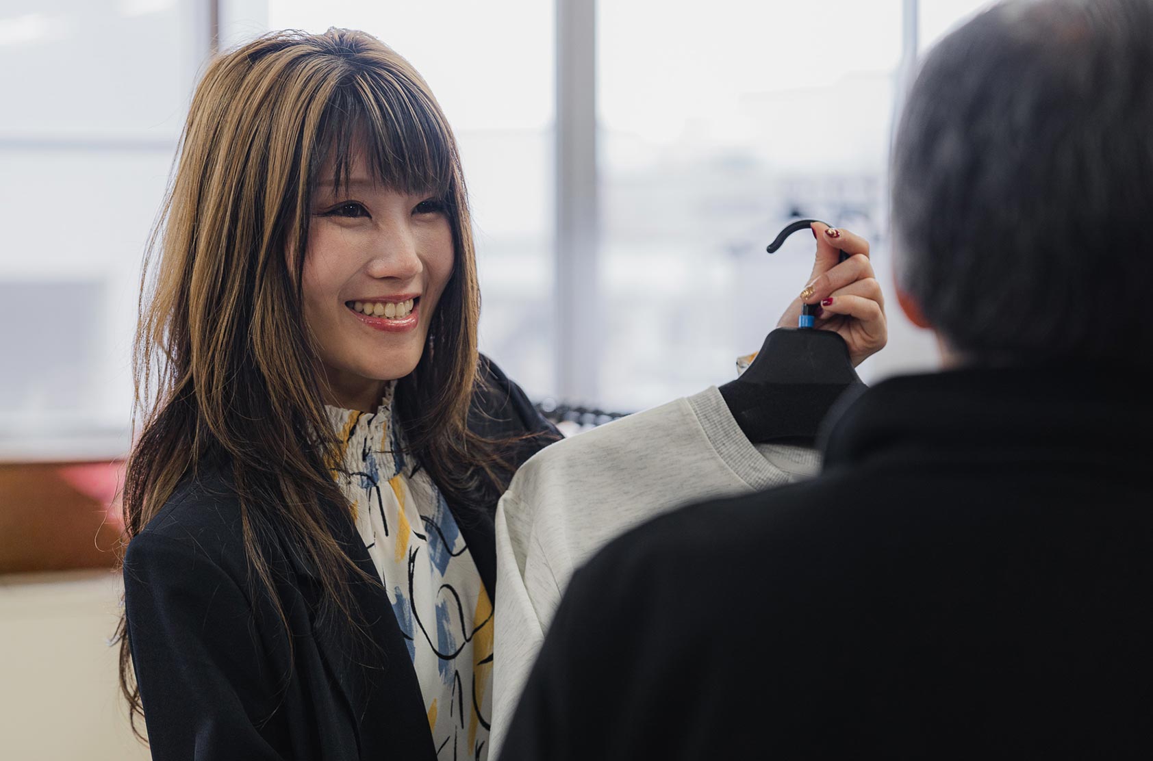 繊維製品の卸売や、施設様向けの「アパレル移動販売」まで。私たちの仕事はただモノを届けることだけではありません。装うことで生まれる笑顔や、自分で選ぶ楽しさ。そんな想いを通じて地域社会に貢献する、私たちの役割をご覧ください。