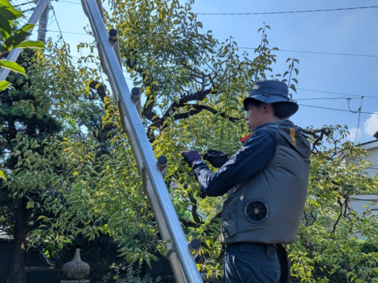 入社後はまず、道具の使い方や安全管理といった基礎を座学と実践で学びます。そのあとは、先輩のアシスタントとして現場に入り、枝の片付けなど簡単な作業からスタート。ひとつずつ確実に覚えていきましょう。