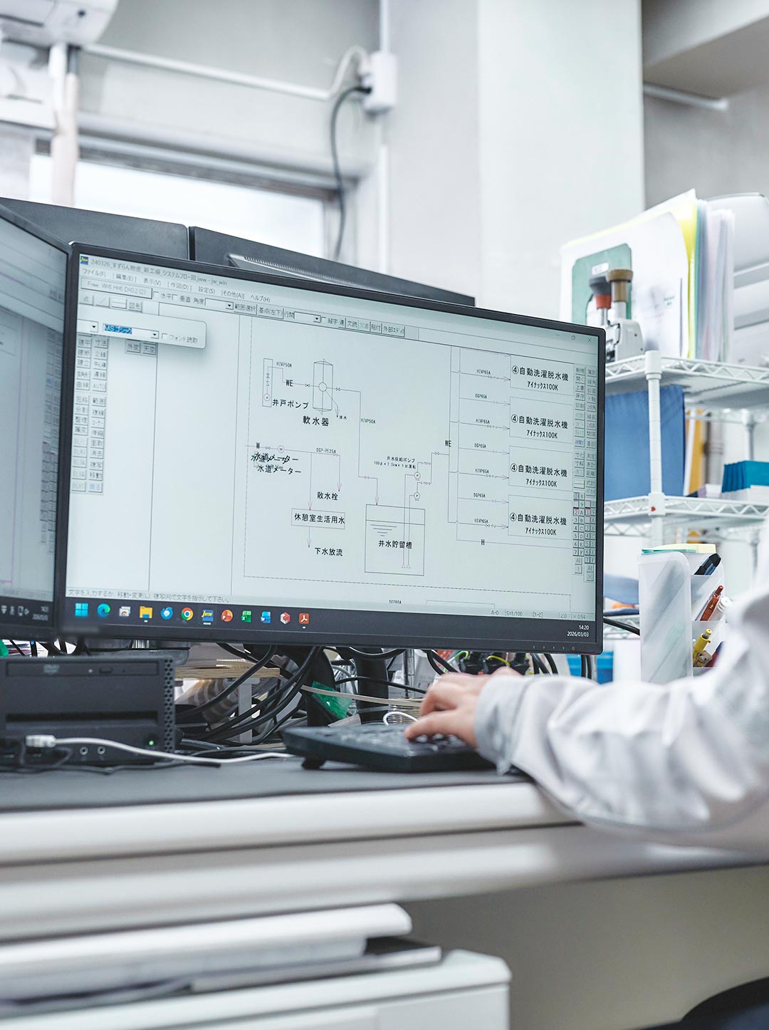 2005年以降、私たちは分析だけでなく、その結果に基づいた解決策を提示すべく、水処理設備の設計・施工・メンテナンス分野へ本格的に参入しました。問題の発見から解決までを一貫して行える体制を整えたことで、顧客への提供価値が飛躍的に向上。現在は北海道から関東まで、活動のフィールドを広げています。