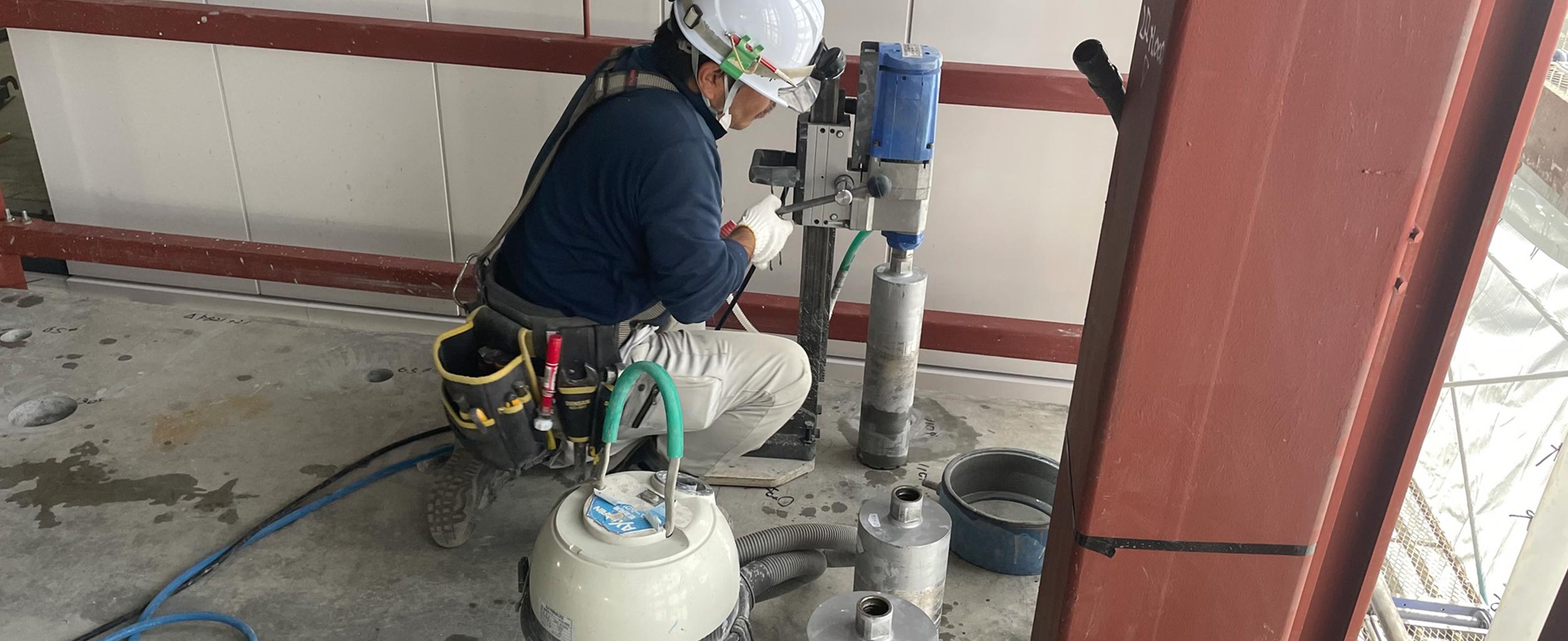 高品質な穴あけなら、コア穿孔がおすすめです。ダイヤモンドビットの回転により、無振動・無騒音・無粉塵で正確な穿孔を実現します。
