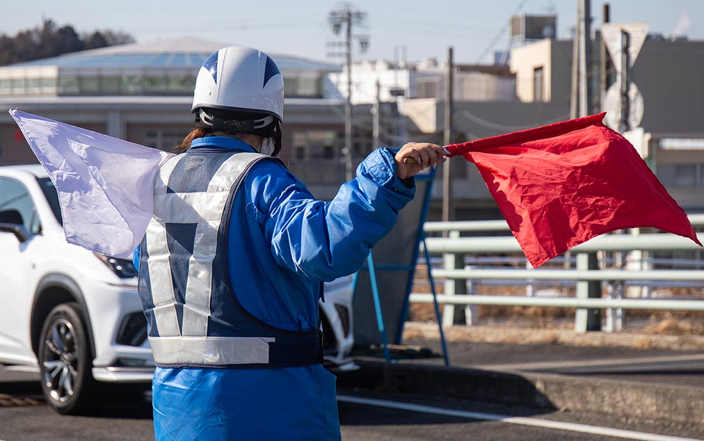 お任せするのは、道路工事の片側交互通行や工事車両の誘導といった、基本的な警備業務が中心です。