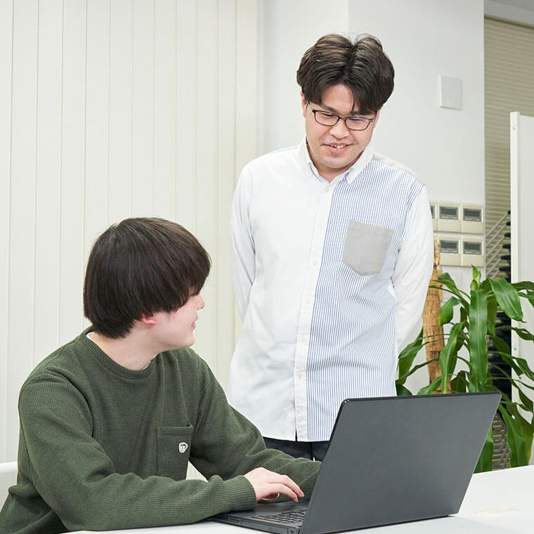 会社と考える毎月帰社日があるので、コミュニケーションが取りやすく、必要があれば面談の機会も設けています。将来や目標についてのすり合わせもバッチリ行えるのでご安心ください。「まだまだスキルアップしたい!でも方法がわからない…」という不安は感じさせません。役職者を目指す方には、そのために“なにをすればいいのか?”という部分までお伝えします。