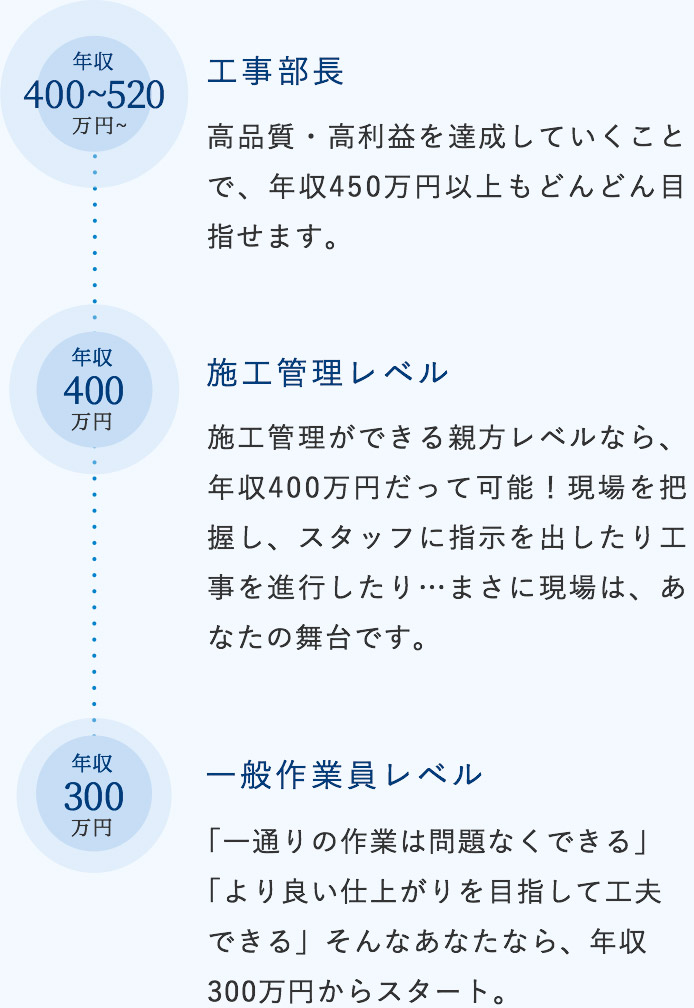 別の建設会社で働いていたところ、現社長に誘われて入社を決めました。この会社で働いてすでに17年が経ちますが、上下関係が厳しくなく、どんなことでも気軽に相談できるのが良いところだと思っています。