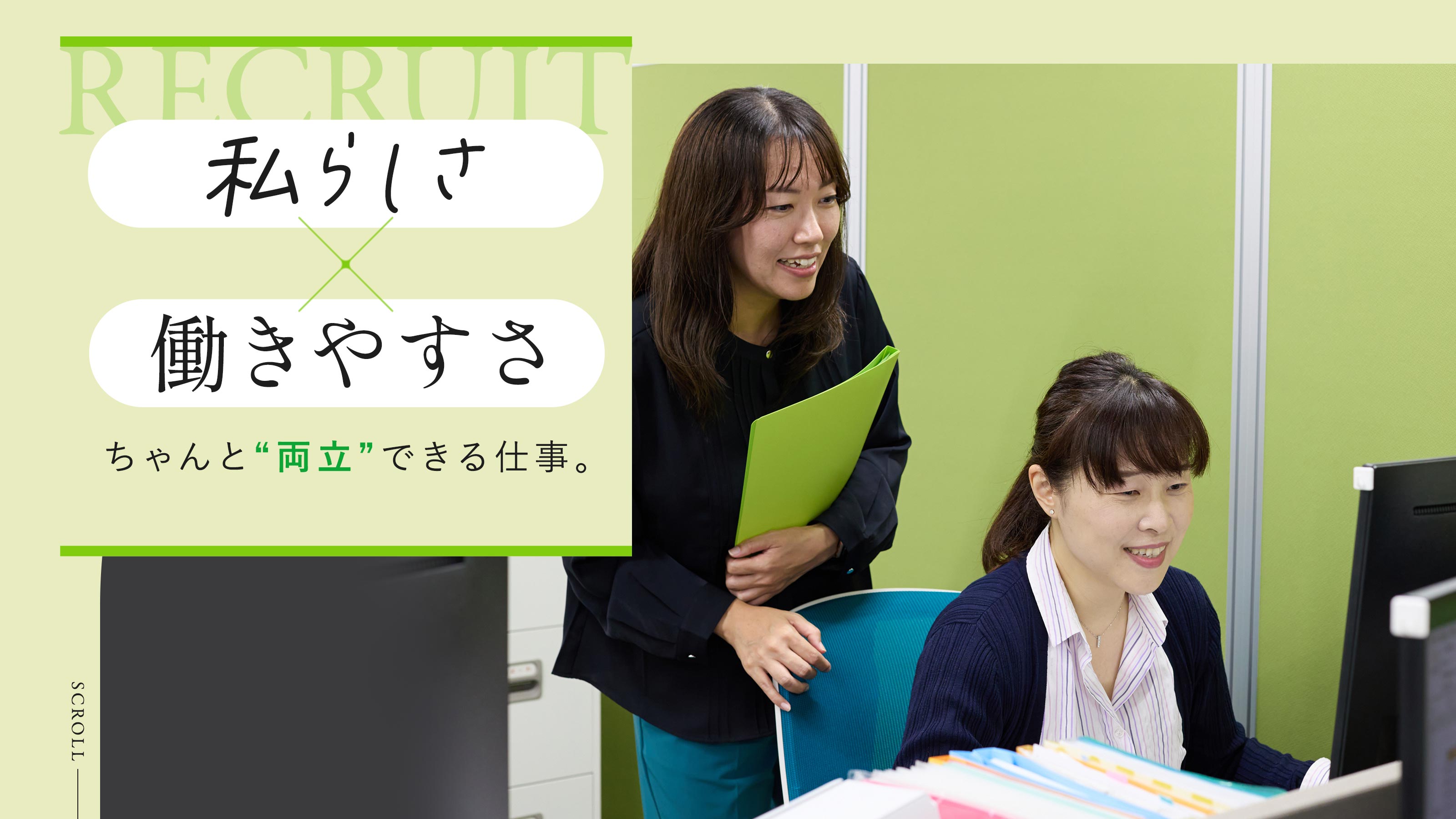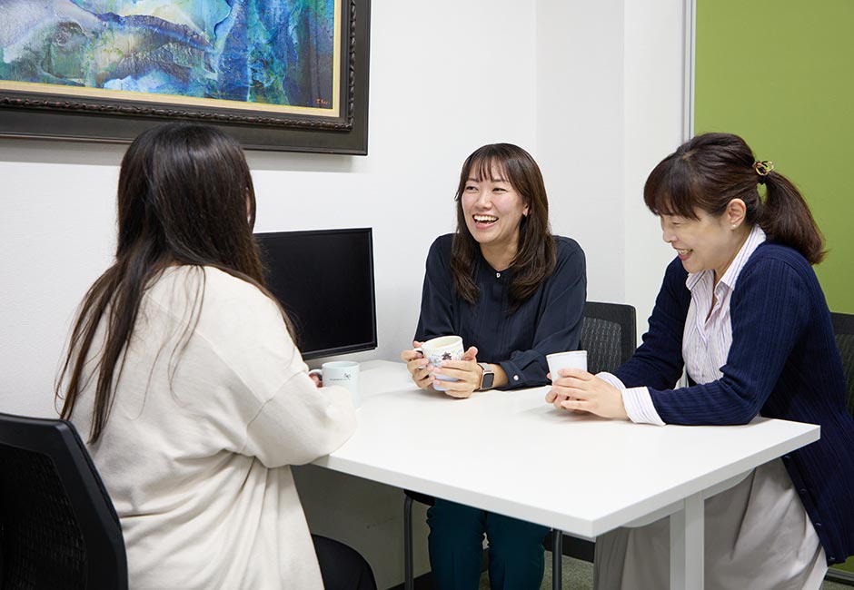 土日祝日休みの完全週休2日制で、年間休日は120日以上。プライベートの時間を大切にし、メリハリのある働き方が可能です。産休・育休制度も取得実績があり、安心して将来のライフイベントを迎えられるでしょう。なにか困ったことがあっても気軽に相談でき、“私らしく”過ごせる環境です。