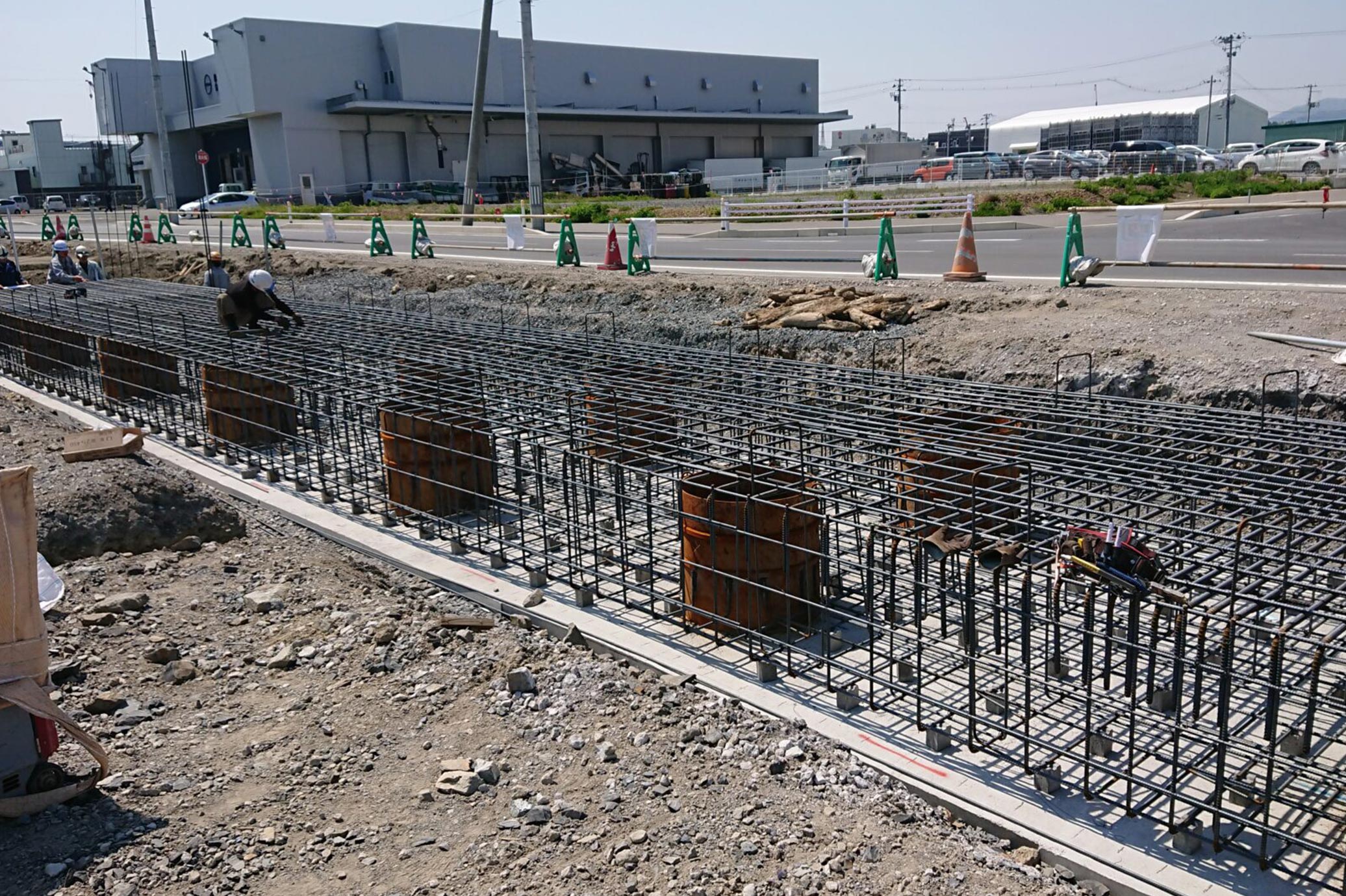 2宅地造成工事・外構工事・総合土木工事が主な仕事です。各現場に応じて、鉄筋工や型枠工、生コン打設工などの作業を行います。掘削作業から側溝構築(水路)やフェンス設置、上下水道工事(型枠施工・型枠作成)など多岐にわたる業務を担当。高架用耐震工事もあり、人々の生活や命を守る社会貢献度の高い仕事に携わることができます。