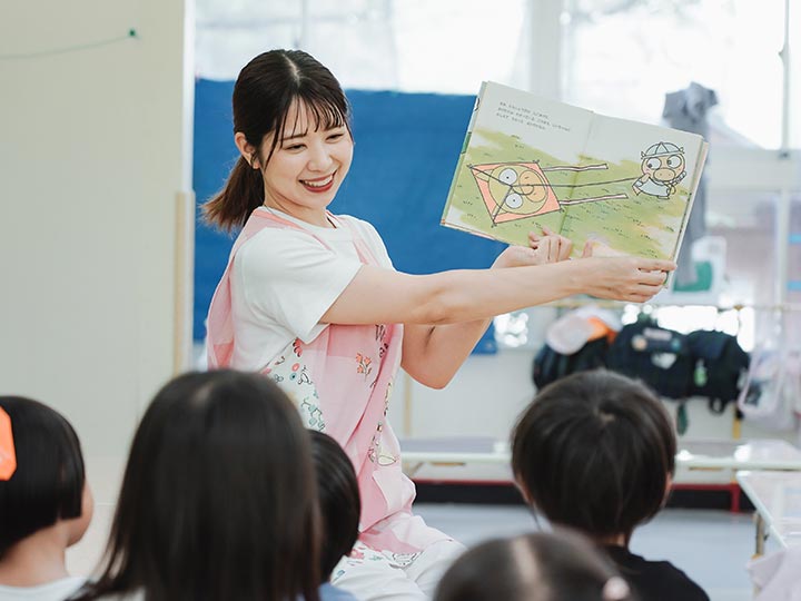 のぞみ幼稚園では、「こんなことやってみたい」という思いを気軽に伝えられる雰囲気があります。その理由は、日報を通じて、みんなでたくさん話をしているから。新人の先生の意見も「それいいね!」と温かく受け止めるので、意見を言いやすい職場です。さらに、一人ひとりをしっかり支える仕組みも整っています。OJTやペア制度による丁寧なサポートはもちろん、保護者対応やクラス運営も決して1人で抱え込ませません。